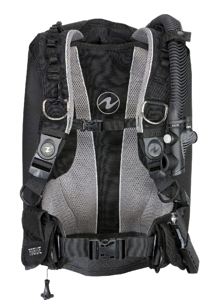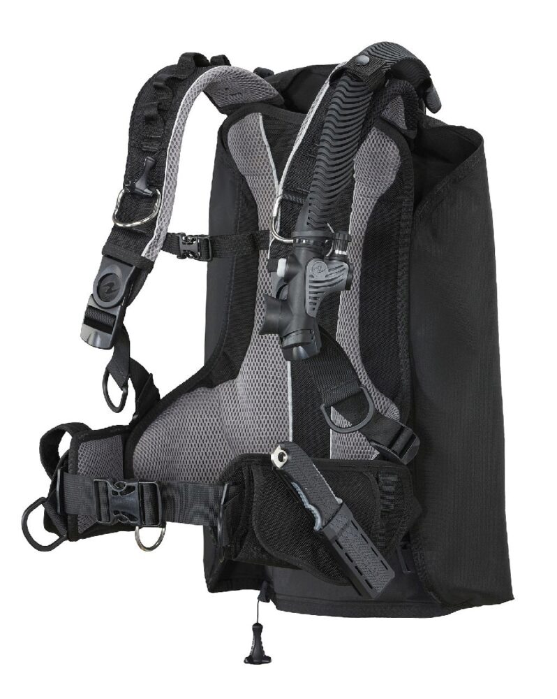 Included Patented SureLock II Weight System - allows you to easily insert the weight pouch and an audible click lets you know the weights are secure in the BCD. Once engaged, the weights can be released with a firm pull of the handle. The SureLock II weight pockets can accommodate 20 lbs. (9 kg) capacity. Optional Trim Weight Pockets (see SKU: UDRTP) with a 3 lbs. or 5 lbs. (1.36 kg or 2.25 kg) weight capacity each can be added. BCD comes equipped with Aqua Lungs Power Line Inflator with an increased fill rate which is now, one of the highest air flows in the industry. The Power Line is an environmentally sealed unit for less maintenance, has integrated hose clips for attachment to the LP hose for a streamline and low profile. The inflator is equipped with a cable activated rapid exhaust at the top, simply pull down on lower unit to dump air. Inflator also includes a 3/8" threaded low-pressure quick-disconnect hose for attachment to your first stage regulator. Additional right rear lower and shoulder pull dump valves allows trimming buoyancy in any diving position.