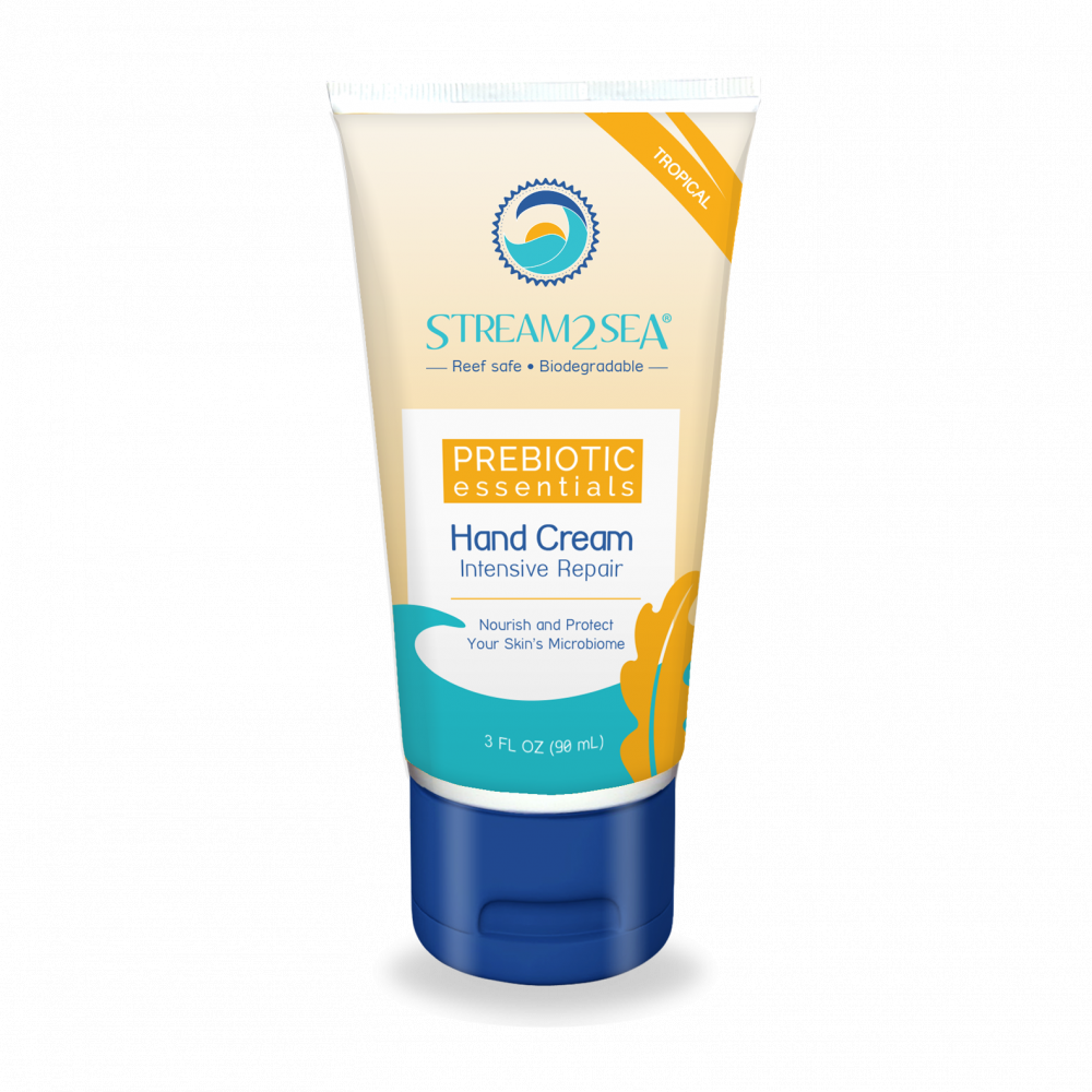 Stream2Sea Prebiotic Essentials Tropical Intensive Repair Hand Cream is an EcoConscious moisturizer specially formulated with powerful prebiotics to hydrate, protect, and nourish your skin.