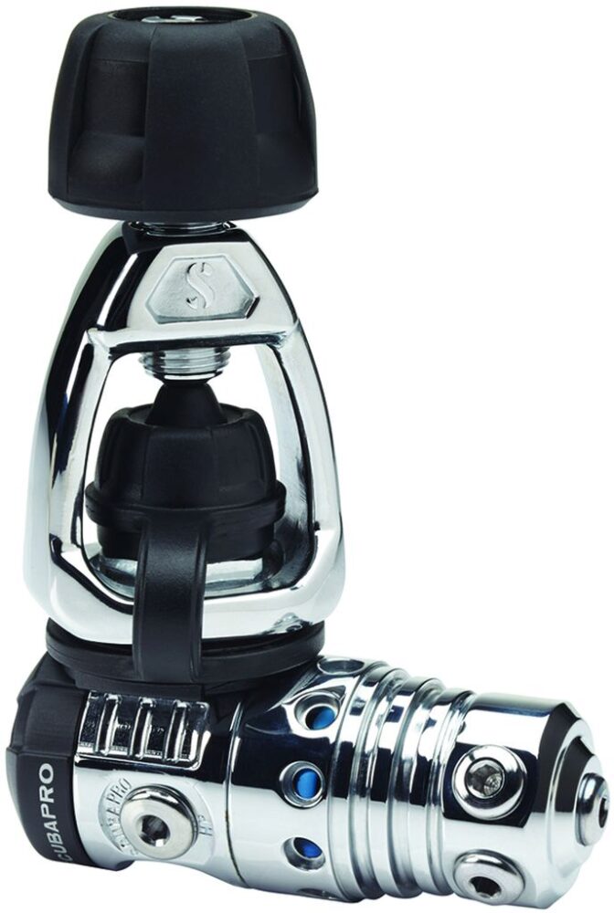 - Air balanced flow-through piston in a chrome plated brass body provides constant and effortless airflow unaffected by depth, tank pressure, or breathing rate.