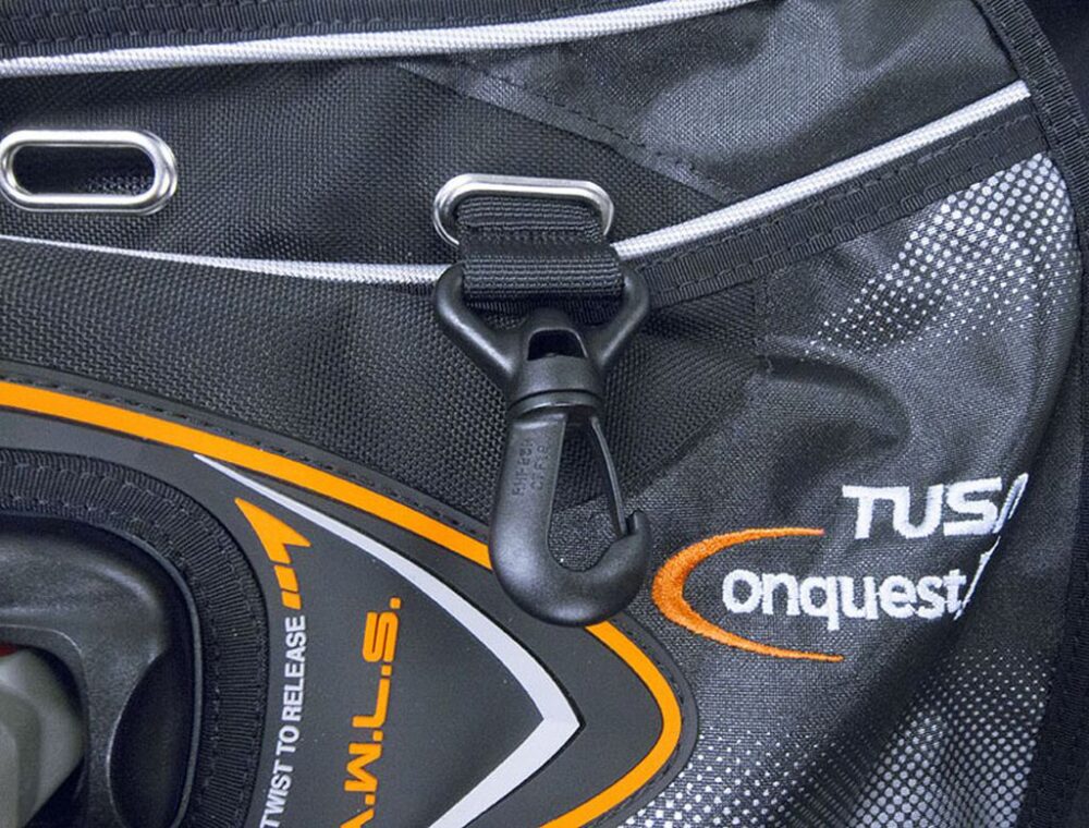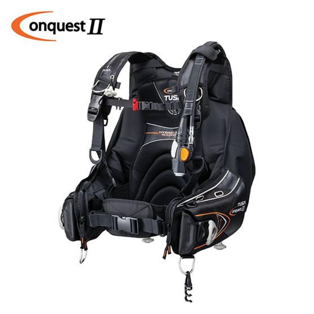 Conquest II is the latest in BC technology incorporating a Hybrid 3-D Cubic Bladder design and TUSA's Advanced Weight Loading System (A.W.L.S II). The BC0201 features a new harness system providing ultimate tank stability and unsurpassed buoyancy control. The Conquest II comes standard with TUSA's A.P.A. (Active Purge Assist) System and enhanced lumbar and back pad for maximum comfort. In addition, the Conquest II offers a new Custom Accessory Dock with the resin Quick Clip and D-ring accessory. The custom accessory dock offers the ability to customize your TUSA BC's accessory attachment points. Seven (7) customizable attachment points allow the user to position their accessories in a location that best suits their needs. Conquest offers several features including 4 dump valves (OPEV + 3), 4 Stainless & 4 Resin D-rings, knife grommets and 2 zippered pockets.